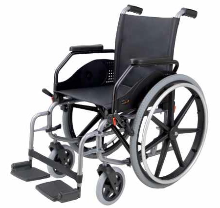 Leve e fácil de dobrar Estrutura de aço pintado Cruzeta tripla para proporcionar maior resistência Apoios de braços rebatíveis para facilitar a transferência Patins dobráveis, destacáveis e reguláveis em altura com abertura bilateral Estofos resistentes a incêndio em conformidade com a norma EN 1102: 1995 Rodas traseiras: - diametro de 600mm com aro em alumínio para auto movimentação - fácilmente removíveis para arrumação em menor espaço - pneumáticas ou rígidas Rodas dianteiras anti furo, de 200x30mm rígidas Travão de mão em ambos os lados Largura de assento: de 370, 400, 430 ou 460 mm Capacidade de carga: até 150Kg